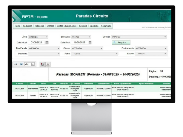 O APTA REPORTS vai além da automação de relatórios. Com ele, sua equipe registra, classifica e analisa as paradas dos ativos de forma estruturada, garantindo a rastreabilidade das causas e impactos no processo produtivo..